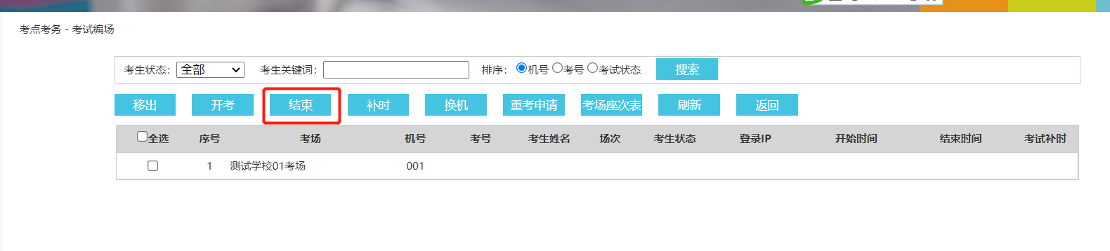 注意:正式考试时,一个场次考试完毕,需要点击“结束”按钮,结束本场次考试,然后再开考下一场次。